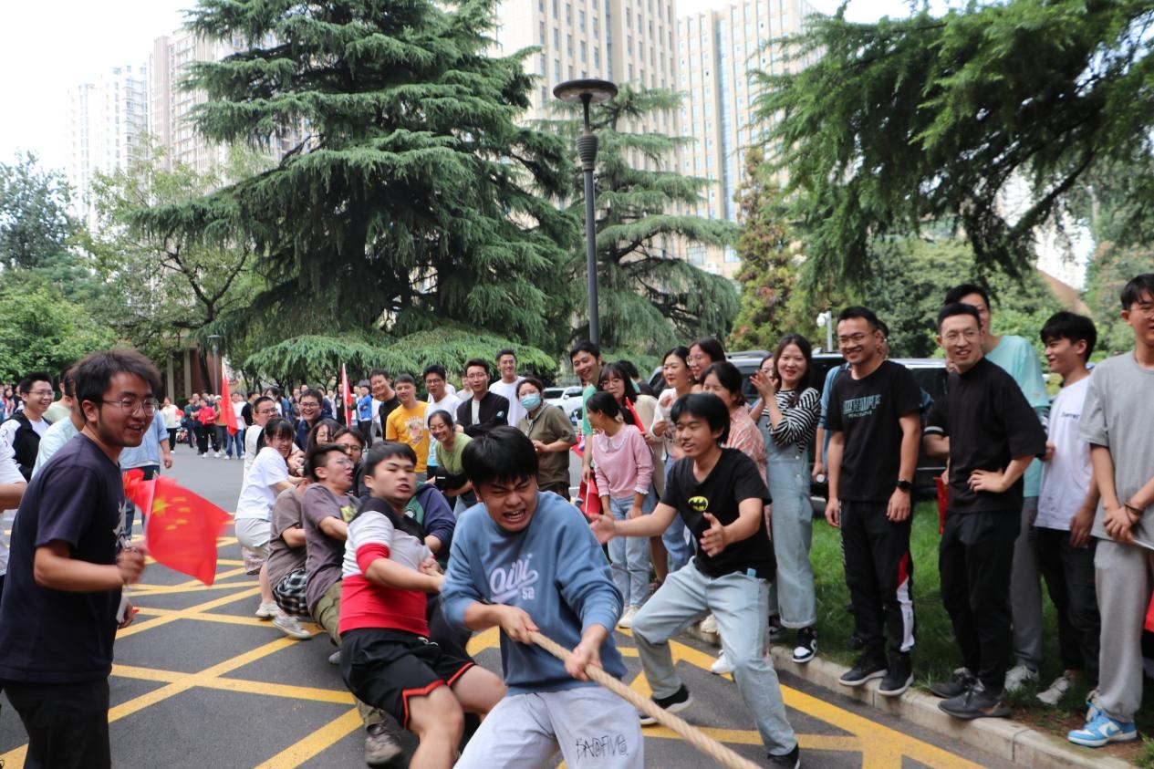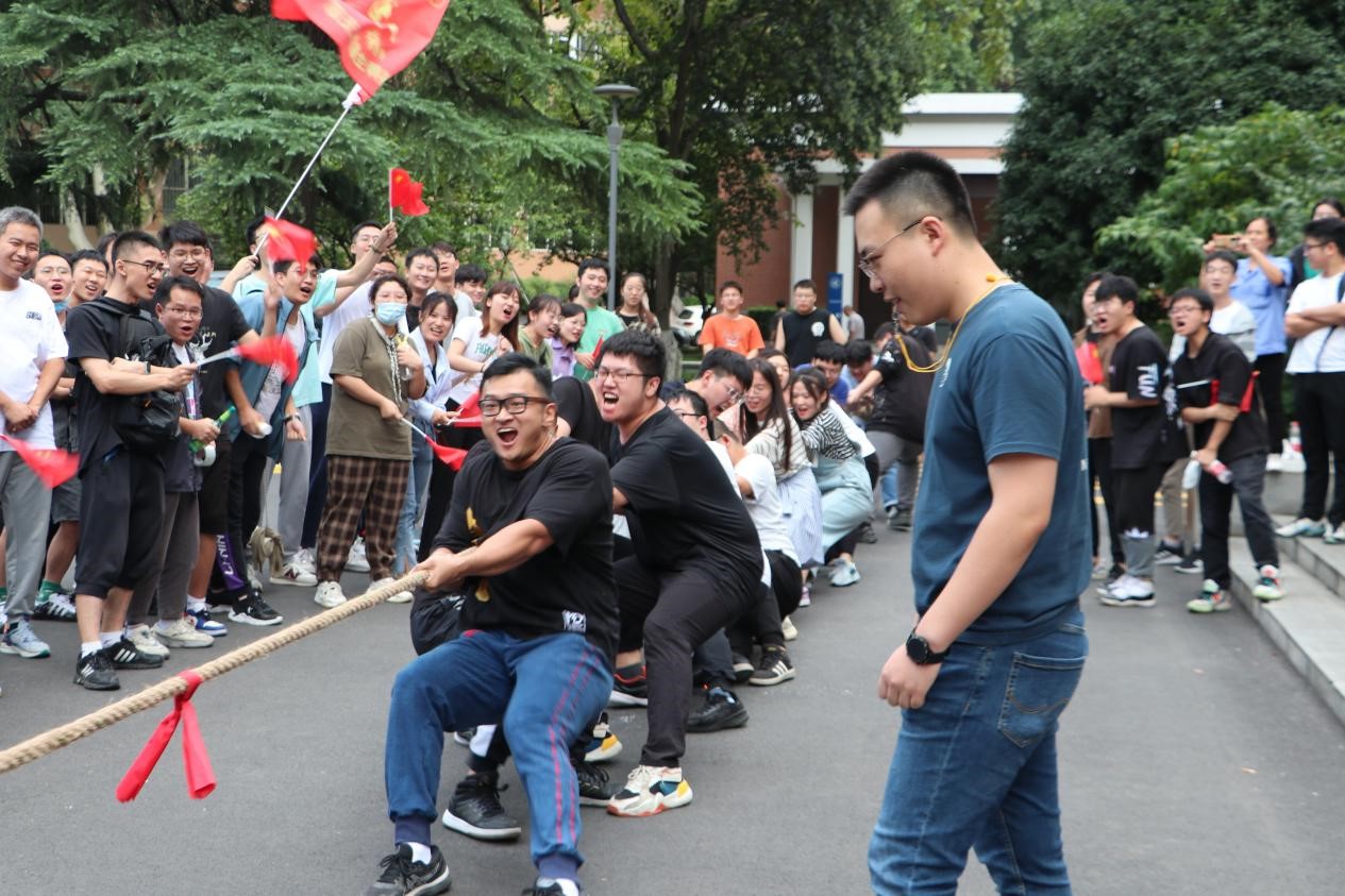 党委、团委和部门工会联合举办的“喜迎二十大,奋进新征程”“健身月”趣味运动会暨师生融合拔河比赛在公字楼前顺利举行。高清无码
