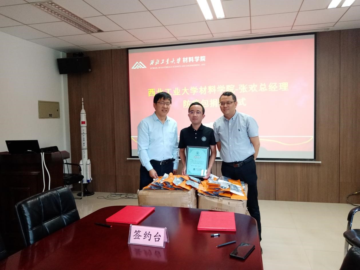 与中陕核生态环境江苏分公司张欢总经理在公字楼322会议室顺利举行了防疫包捐赠仪式。学校教育基金会秘书长张英群、高清无码