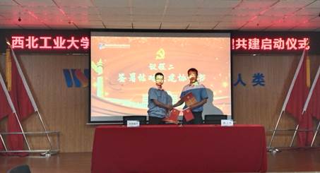 会上,锻压师生融合第一党支部书记徐建伟和西部超导第七党支部书记代表刘建伟共同签署结对共建协议书。