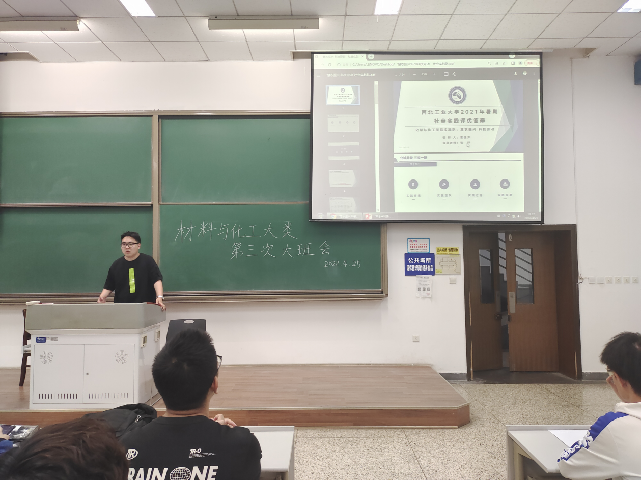 4月25日晚,2021级材料与化工大类召开第三次大班班会暨社会实践经验分享会。