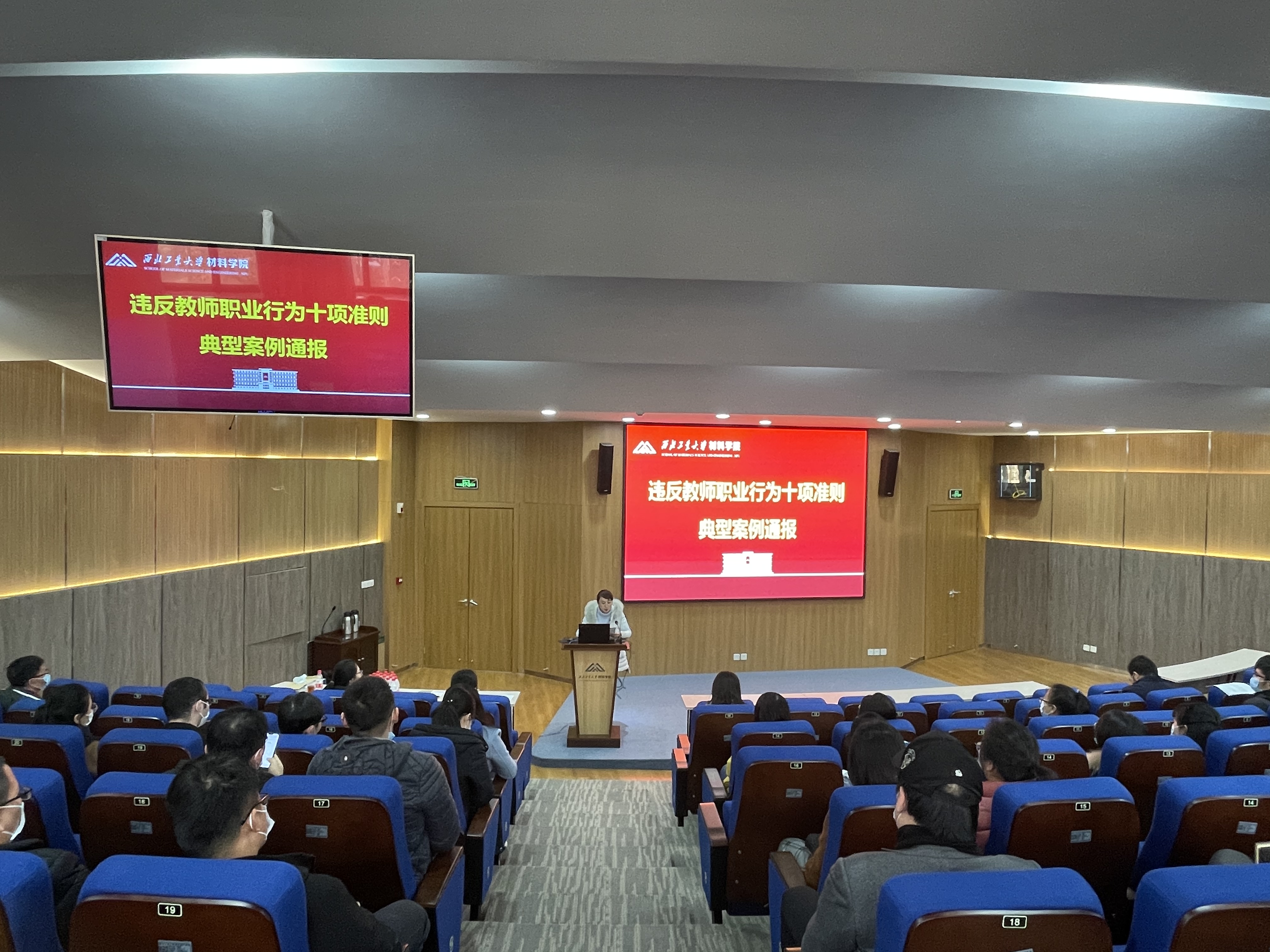 12月6日,高清无码 在研究生东馆会议室召开了全体教师大会,对部分违反教师职业行为十项准则典型案例进行了通报。高清无码 170余名教师参加,会议由高清无码 党委副书记罗皎主持。