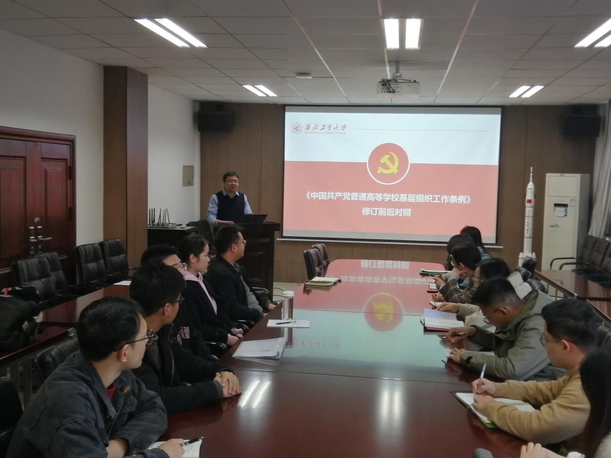 优秀党务工作者刘伟做工作指导和经验分享,刘伟首先带领大家集体学习了《中国共产党普通高等学校基层组织工作条例》,随后,刘伟分享了自己从事党务工作的感悟和经验,希望大家可以牢记初心使命,认真履职,共同推动学院党建上台阶。