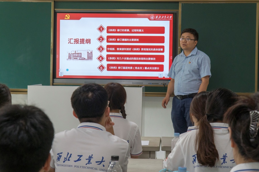 培训班坚持理论学习和党建实操并重,在“管理教育模范连”学习室,结合部队文化氛围建设精心安排2场专题培训讲座,学院党委副书记刘伟给学员们集中培训了《中国共产党组织工作条例》、《中国共产党普通高等学校基层组织工作条例》和《中国共产党党徽党旗条例》,马克思主义学院张记国副教授组织学员集中学习了《中国共产党章程》和作了题为《领导体系论》的专题授课,课上以教学与讨论相结合的形式,促进学员们勤学习、多交流、善思考,巩固和扩大培训成效。