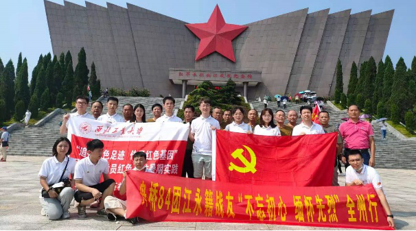 为深化学习内容,丰富学习形式,学院专职辅导员史俊勤老师结合学习感悟在现场为同学们讲述了一节形象生动的微党课。史老师结合湘江战役背景,为大家讲述了如何走好新时代的长征路,教导大家要学史增信、学史力行,树立科研报国信念,为实现“两个一百年”奋斗目标、实现中华民族伟大复兴中国梦贡献出自己的努力。队员们深受鼓舞,纷纷发表自己的见解并集体朗诵《七律 长征》,以表明自己定要走好新时代长征路的决心与意志。同时,实践队成立临时党支部,与舟桥84团老兵开展了支部共建活动,聆听他们的服役故事,感悟他们报效祖国的方式;支部也向老兵介绍西工大人践行中国共产党人初心与使命的故事和西工大现象。最后,两个队伍成员集体唱响《没有共产党就没有新中国》这一嘹亮的时代主旋律。