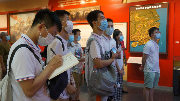 随后,受疫情影响,实践队重点赴八路军桂林办事处、金田起义博物馆进行了学习调研。在八路军桂林办事处,队员们通过观看《抗日烽火映桂林》展览,详细了解了八路军桂林办事处从诞生到结束的两年零八个月的时间里对中国人民的抗日战争以及世界反法西斯战争胜利做出的巨大贡献。在金田起义博物馆,通过3D体验、现场学习等形式,大家对金田起义的过程有了深入的了解。