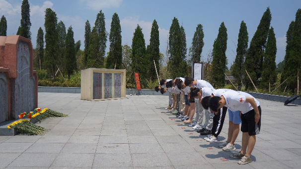 7月30日,队员们来到光华铺阻击战旧址,在烈士陵园前鞠躬缅怀,向在光华铺阻击战中牺牲的红军战士们致敬。“青山埋忠骨,史册载功勋”。在党员李佳丽同志的讲解下,沈述清、杜宗美等红军战士以血肉之躯阻击数倍于己的敌人多次进攻,最终取得胜利,保护中央红军顺利渡江的故事又浮现在眼前。