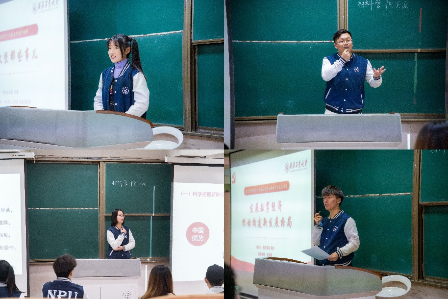 4月10日下午,宣讲团走进友谊校区党课培训班,航空学院2019级硕士生周杰以发展数字经济作为推动构建新发展格局的重要一环,深度剖析了数字经济对于新时期中国发展的重要意义;航空学院2018级本科生宋昊宸、公共政策与管理学院2019级本科生孙珞闻强强联合,以《御科技创新之风,中国青年在路上》为题,鼓励作为创新生力军的青年们奋发向上,为中国创造贡献自己的星星之火。