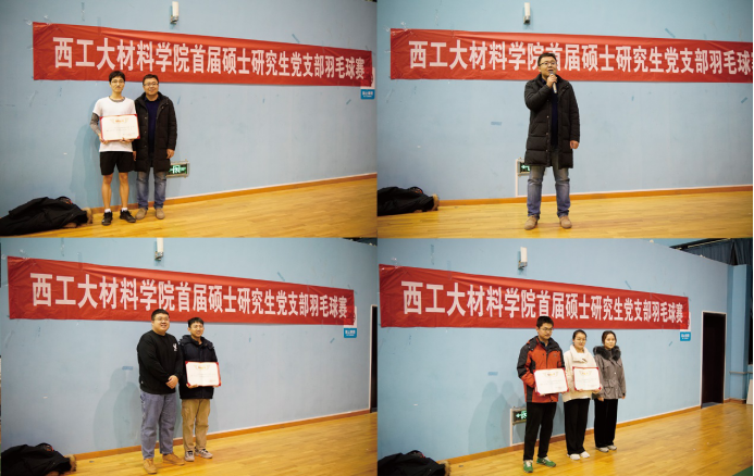 比赛结束后进行了颁奖仪式,学院党委副书记刘伟为获奖支部、运动员颁奖并致闭幕辞,他说,本次羽毛球比赛活动赢得了大家的热情参与,形式很好,后期应多开展这样的活动,通过活动消除同学们科研中的精神疲劳,激发大家的体育锻炼意识,以饱满的精神状态投入到学习中。