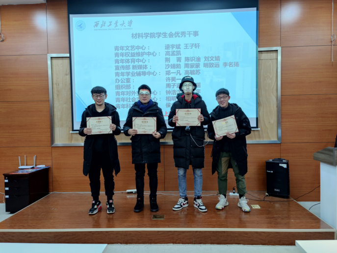 会议最后,学生会主席闫颖迪宣读年度优秀干事名单并由各部长为获奖部员颁奖,并合照留念。