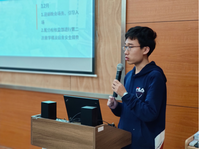 会议首先由学生会秘书长朱欣怡代表主席团做进行学生会年度工作总结,对学生会一年来工作进行了系统性总结,并对存在的不足进行了分析,提出2021年的主要工作任务。其次由办公室、对外交流中心、宣传部、青年文艺中心、组织部等学生会各中心部门的负责人相继述职并做计划展望,校学生会主席王时宇针对大家述职情况进行了交流。