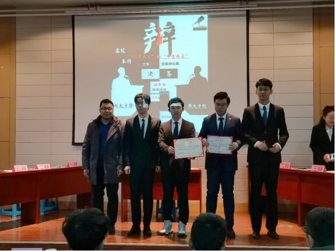 最终经过评委讨论,代表正方的“教东A代表队”实力更胜一筹,摘得此次“文争理辨”校级辩论赛总冠军的桂冠。由刘伟老师为两支队伍颁奖并合照留念。