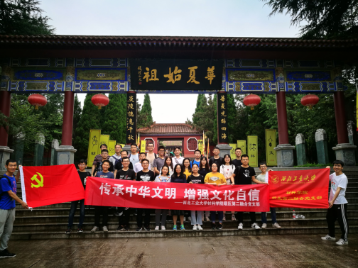 7月19日下午,在党支部副书记张洪瑞同志的带领下,大家还前往炎帝故里神农镇炎帝陵拜谒中华民族始祖炎帝神农氏,并接受悠久的农耕文明熏陶和民族优秀传统文化教育。大家瞻仰了威严的炎帝座像和炎帝陵墓,参观了炎帝陵石碑、牌坊等人文景观;在炎帝庙,大殿面阔五间,左右两边的对联为书法家茹桂所书"创始定有人千载歧黄崇炎帝,流传安天据八方稼穑念神农",表达了对炎帝的崇敬之情;生动形象的壁画讲述了炎帝的生平和功绩,也让大家深深领略到炎帝精神及其文化形象,表达对人文始祖炎帝的敬仰之情。参观后,大家纷纷表示要传承中华文明,充分发扬炎帝精神,立足自身,发奋图强,为中华民族伟大复兴贡献力量。