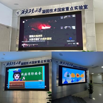 为配合此次实验室安全检查,检查组在材料科技大楼一楼大厅播放安全警示片。该片从安全事故出发,对消防安全、用电安全、用水安全等方面进行了宣传教育,以警示学生加强自我学习和增强安全意识,从源头杜绝各类安全事故的发生。