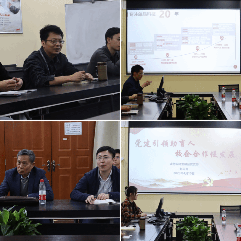 会后,碳材料师生融合党支部党员参观了单晶硅生产车间,了解其发展历史、基本情况、研究领域以及近年来取得的重要成绩。双方还就科研、党建、就业等进行深入交流,为探索后续深入共建奠定了基础。