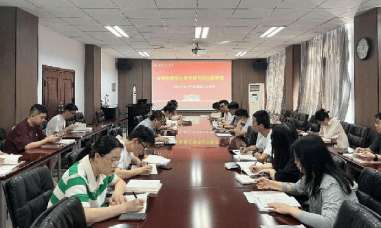 党委副书记蔡利剑讲授专题党课,学院全体学生党支部书记及负责学生党建专职辅导员张曦老师参会。