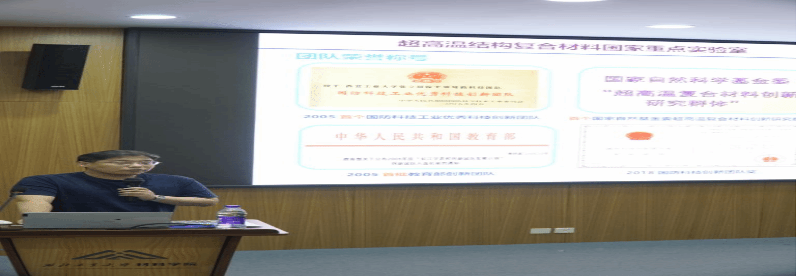 的整体情况,重点介绍了学院现有各研究团队和研究方向;最后在学科前沿讲座环节,罗婷、李文亚、郑策、李炫华等四位教授,分别就“稀有金属材料与加工”、“先进固相焊接技术”、“战略关键材料之陶瓷基复合材料”、“材料前沿交叉中心概况”做了专题学术报告。