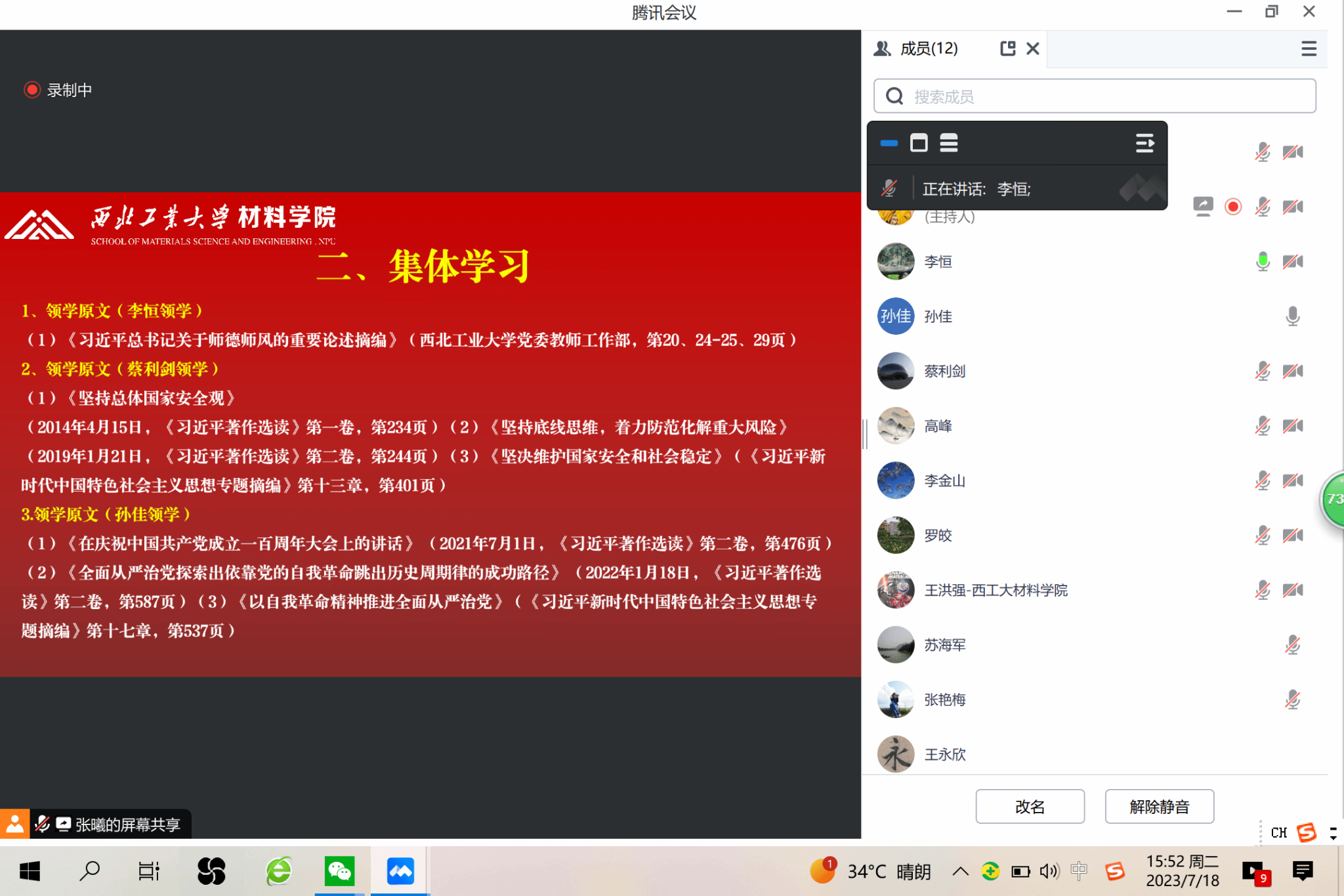 通过线上腾讯会议形式召开党委理论学习中心组扩大会议开展师德集中学习教育及“总师育人文化”讨论工作,院领导班子成员、党委委员、各团队负责人及融合支部书记等参加了会议,会议由学院党委书记李恒主持。