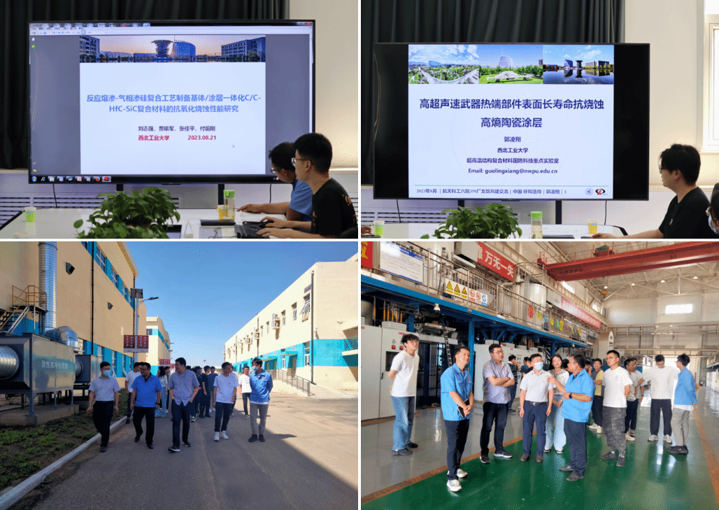 下午双方还开展学术交流,严科飞主任汇报了《发动机对新材料的需求》,碳材料师生融合党支部支委刘志强汇报了《反应熔渗-气相渗硅复合工艺制备基体/涂层一体化C/C-HfC-SiC复合材料的抗氧化烧蚀性能研究》,碳材料师生融合党支部学生代表郭凌翔汇报了《高超声速武器热端部件表面长寿命抗烧蚀高熵陶瓷涂层》,与会党员们分别从碳/碳高温复合材料的最新研究应用进展、共建“卡脖子”难题、推动“高校+企业”科研项目合作、弘扬航天精神、创新党建活动形式进行热烈讨论。双方在优势互补、目标趋同的背景下进行交流共建,共同推进共建科技创新平台、联合科技攻关、建设实习就业基地。