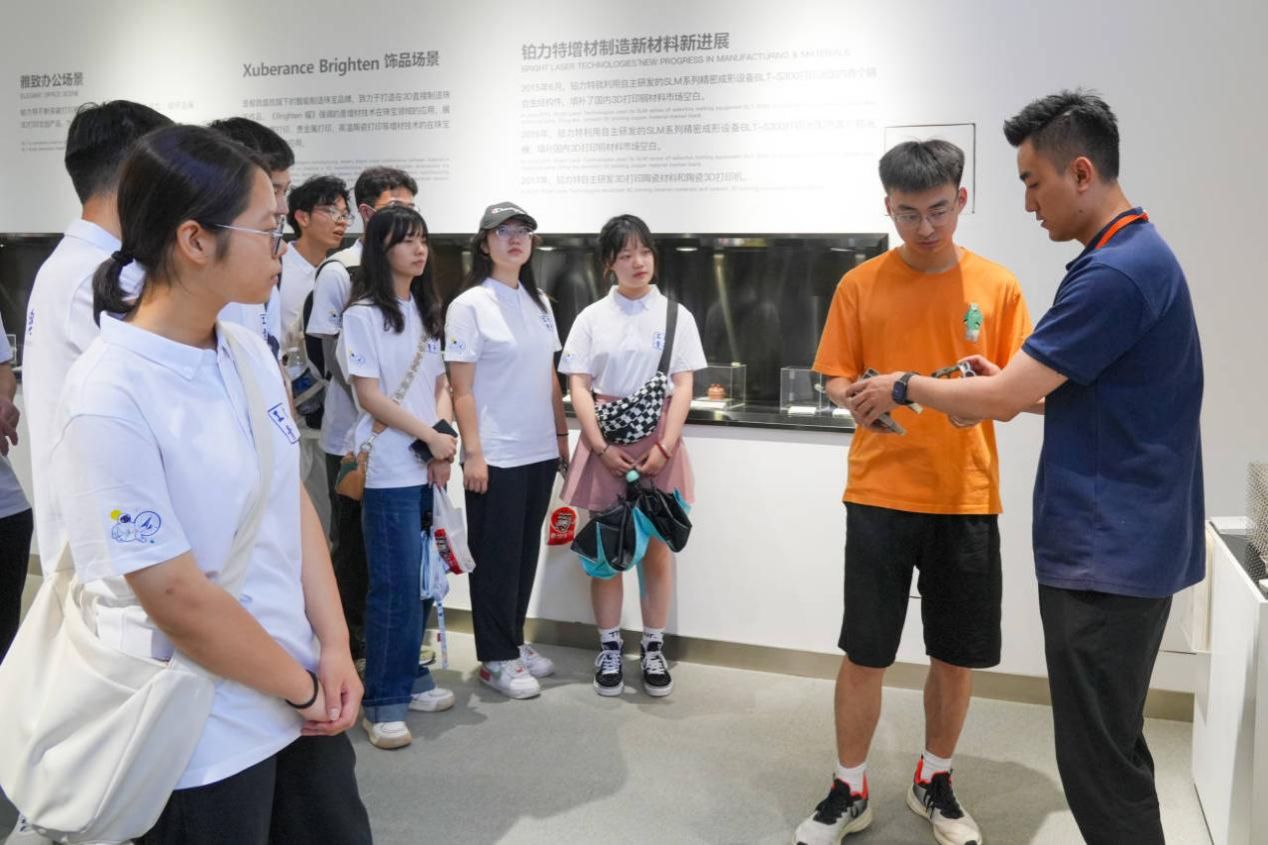最后,铂力特的技术人员向实践队成员详细介绍了各种增材制造技术及其应用领域,解答了一系列关于增材制造的问题,并分享了成功案例,包括医疗领域内的假肢、航空航天部件和汽车零部件等。这些案例展示了增材制造在不同行业中的巨大潜力和在国家重点领域的未来发展方向。实践队成员进行了热烈的讨论,并围绕3D打印提出了多个问题,更加深入地了解了材料专业重点领域技术的现状、未来趋势和创新方向,掌握前沿科技与行业动态,同时也挖掘了铂力特公司背后的报国情怀,助力成员职业生涯规划。