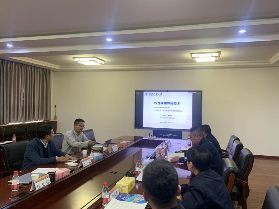 的基本情况、学科特色、优势研究团队成果、社会服务以及产业转化等情况。随后,李恒、杨夏炜分别做了学术交流报告。报告结束后,双方就高性能先进材料精密制备、精确塑性成形和固相焊接等方面进行了深入的探讨交流。
