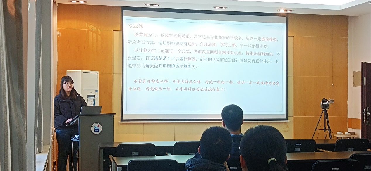 此次考研经验分享会的召开,为即将进入考研冲刺的同学们带来诸多备考技巧和经验,星光不负赶路人,江河眷顾奋楫者。希望同学们调整心态,科学有效训练,提升效率,稳扎稳打,以最佳的状态去备考应考。以梦为马,不负韶华。