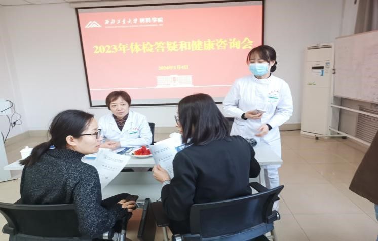 师生表示感谢。他指出校医院体检水平不断提升、检后跟踪和服务机制不断完善,为师生健康工作和学习提供了强有力的保障,希望学院教师能够对照自身体检的问题抓住此次咨询机会,耐心问诊、遵听医嘱,养成良好生活习惯。