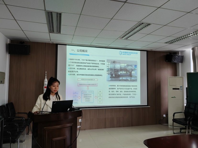 宣传片,随后苏海军对学院的发展沿革、学院建设、师资队伍、人才培养、科学研究、成果转化以及校企合作等方面进行了整体介绍。刘静对中国航发西安动力控制科技有限公司基本情况及公司目前承担的型号任务进行了简介,并针对当前遇到的材料铸造均匀性、异常磨损等技术难题和需求进行了介绍。