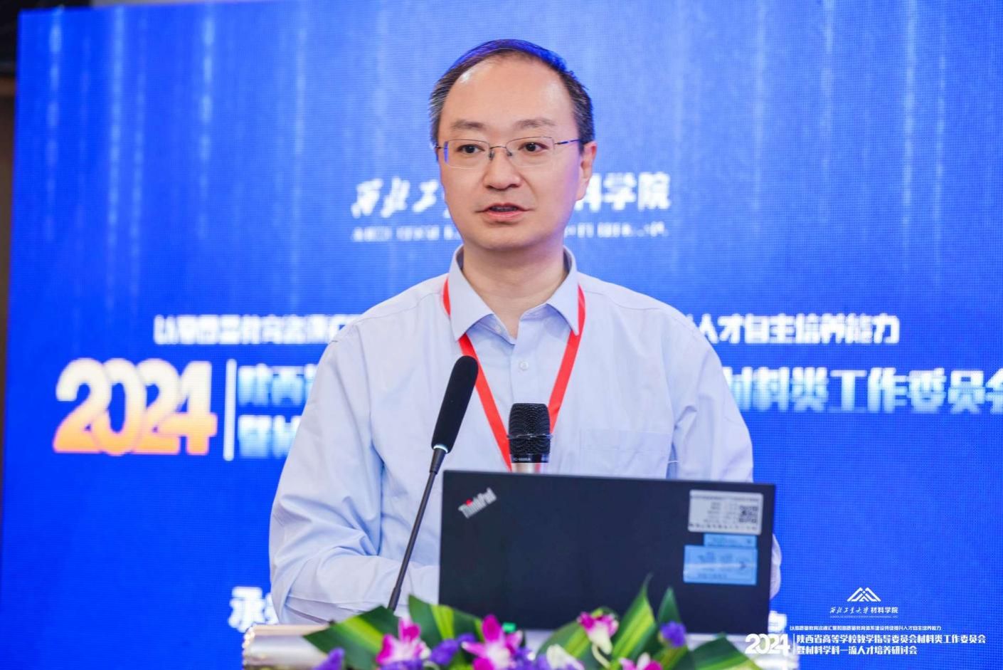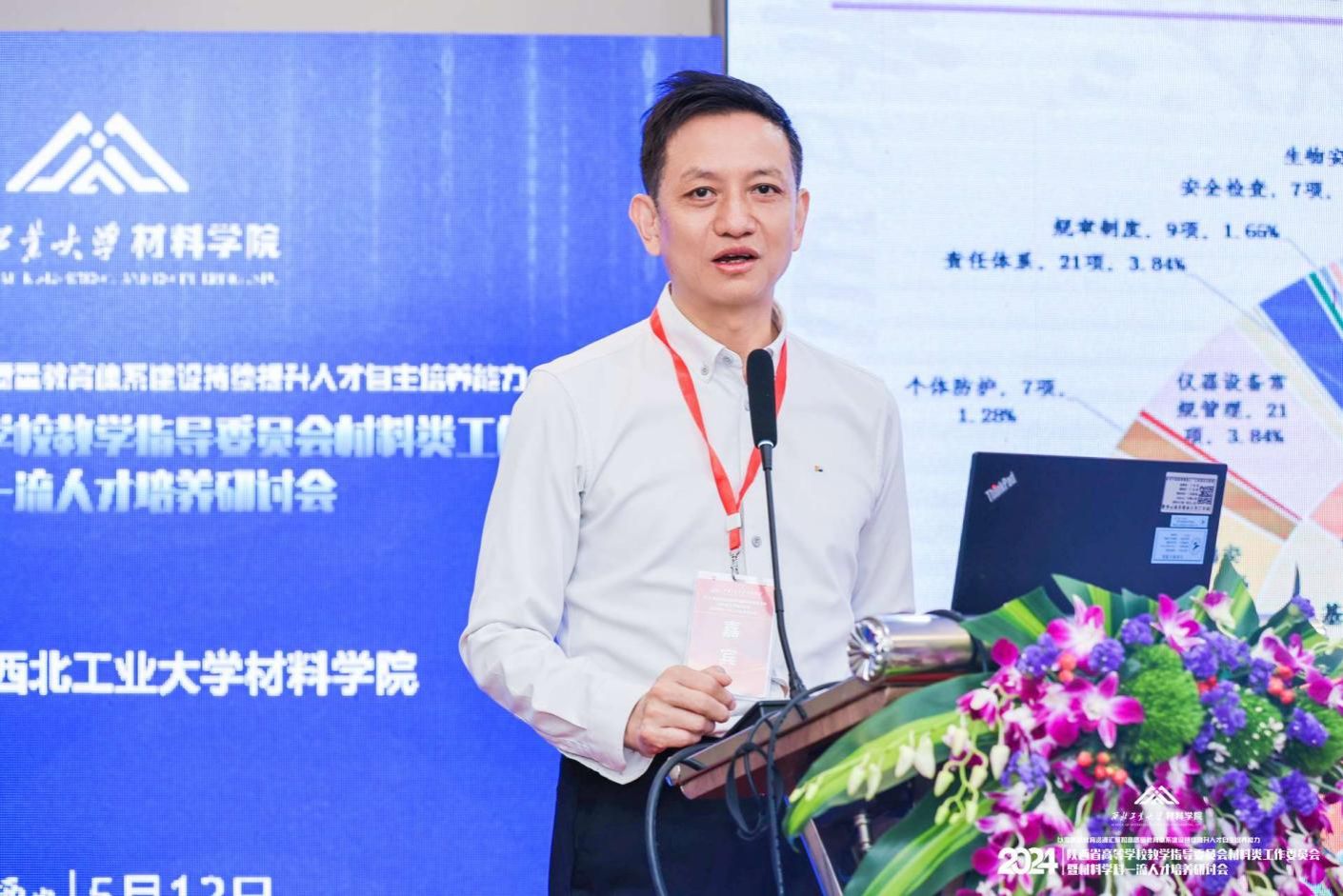 中国工程院院士、陕西省教指委材料类工作委员会主任李贺军出席开幕式并致辞,他表示高等教育是深入实施科教兴国战略强化高质量发展的基础支撑,要以一流教学成果凝练为牵引,深化一流专业内涵建设,推进课程思政高质量发展,强化实践创新发展,加强实验室安全管控,以高质量教育资源汇聚和高质量教育体系建设,构建一流人才培养体系。期待与会专家围绕思政育人格局,一流专业建设、高水平教材和课程建设等主题多分享宝贵经验,为提升材料学科人才自主培养能力贡献智慧与力量。