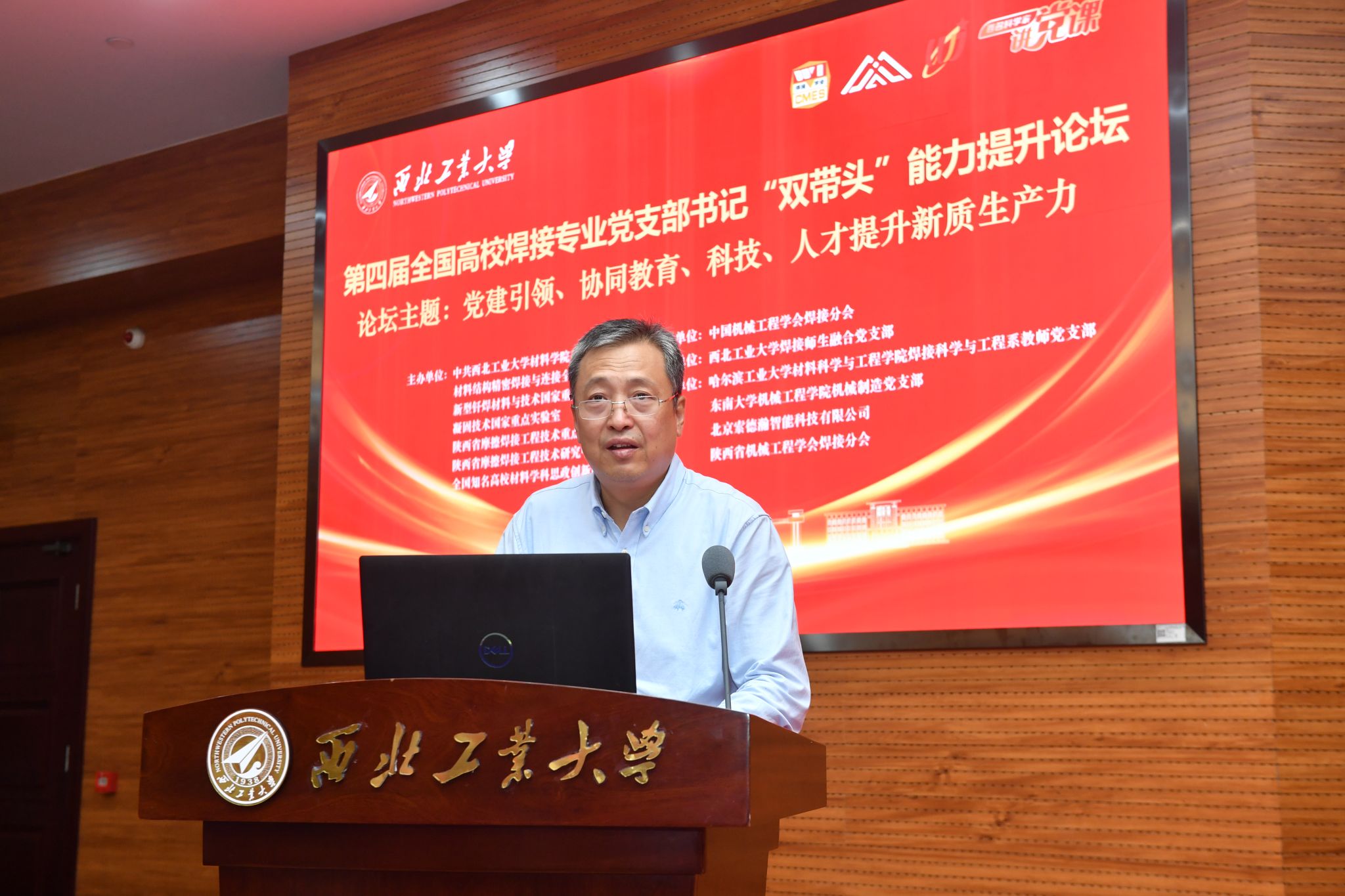 焊接师生融合党支部承办。论坛以“党建引领、协同教育、科技、人才提升新质生产力”为主题,交流探讨高校焊接专业党支部建设新举措,促进党支部双带头人凝心聚力。共有来自103家高校焊接专业(方向)党支部书记和支委以及中国航空制造技术研究院、郑州机械研究所、航天六院、航空工业庆安等科研院所的党员骨干200余人参加了此次论坛,其中包括国家级领军人才10余位。我校李文亚教授担任本届论坛主任委员,焊接师生融合党支部书记杨夏炜担任大会主席。