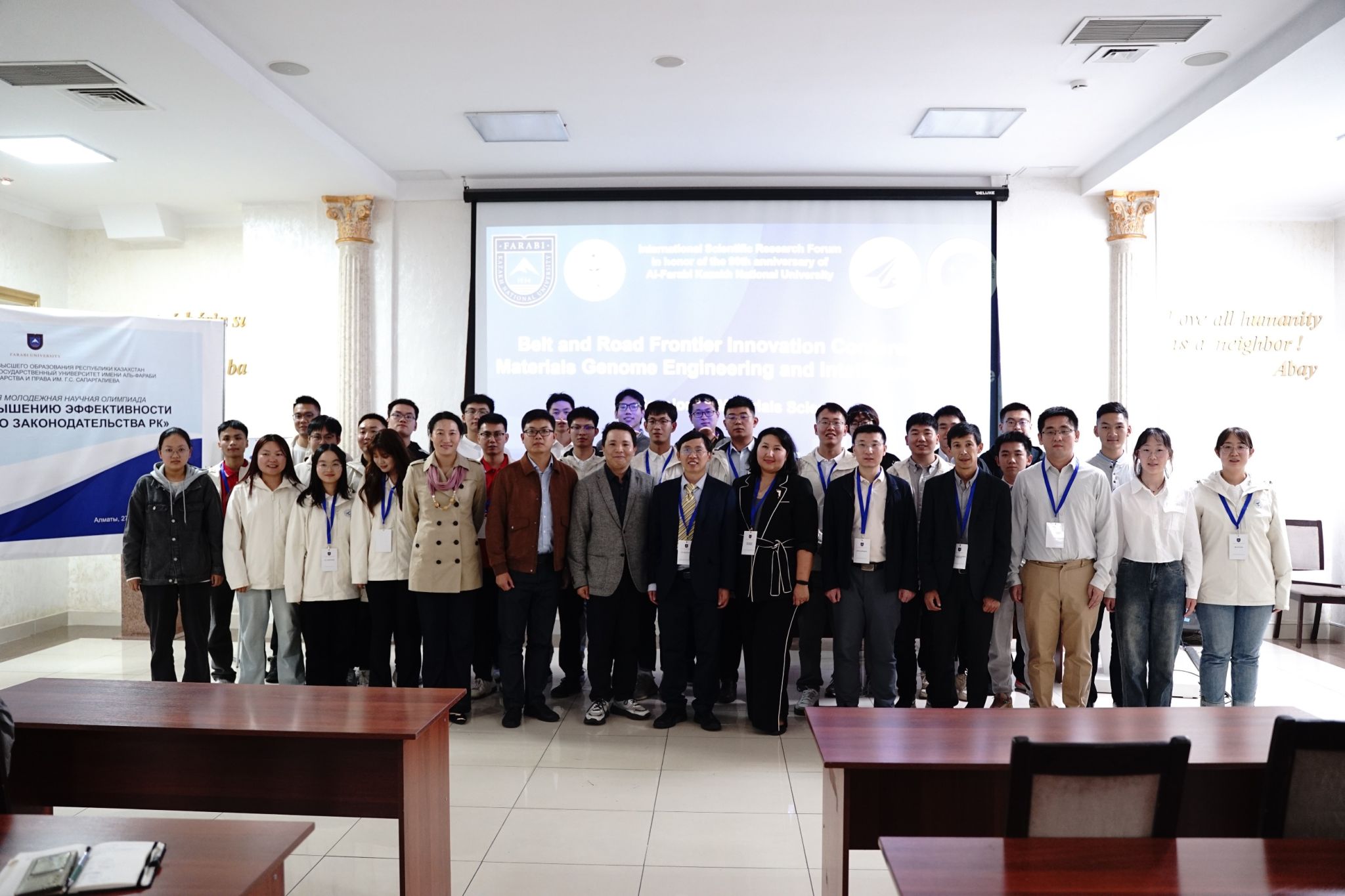 赵清华、段志遥教授和院长助理孙磊一行,带领30名研究生和本科生赴阿里·法拉比哈萨克国立大学,举办第一届“一带一路”材料基因组工程与智能科学研讨会,促进材料科学和智能科学领域的学术交流与合作,并开展系列海外实践活动。
