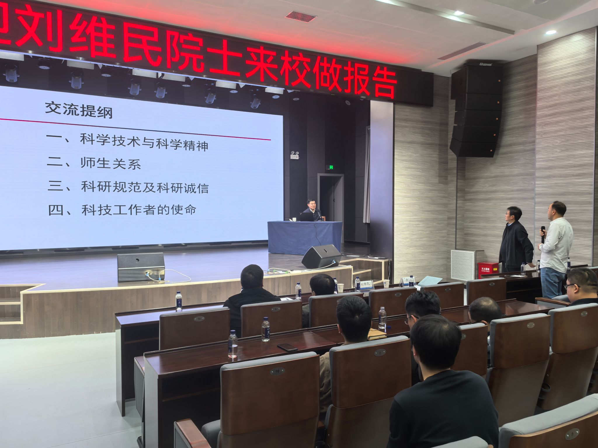 刘维民院士结合自身工作经历,从科学技术与科学精神、师生关系、科研规范及科研诚信和科技工作者的使命等方面出发,分享了自己对科学技术认识和思考,阐述和谐的师生关系、加强科研规范及科研诚信等的重要性,并针对人工智能的飞速发展,提出了新形势下科研诚信面临的挑战。刘维民院士勉励全体师生要具备团结协作、创新实干的能力,能够志存高远、爱国忠诚、责任担当、敬业奉献,努力成为受人尊敬的科技工作者。