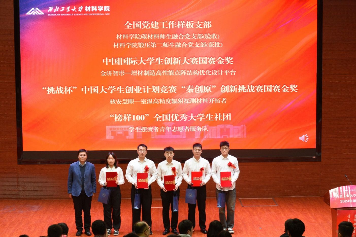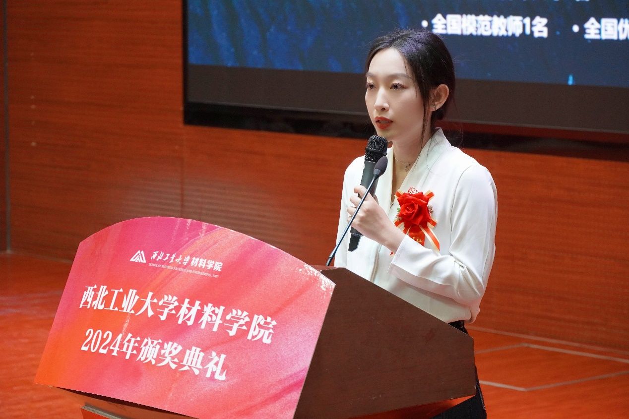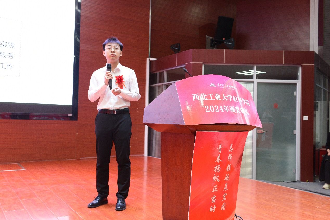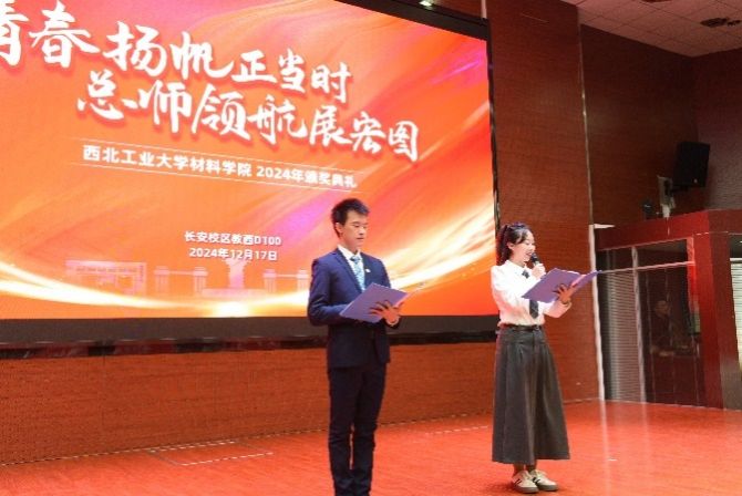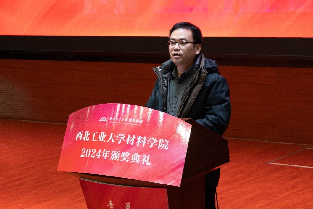禹亮宣读获奖名单,他激励同学们向榜样学习,敢于担当、追求卓越、肩负使命,为实现“天下工大、世界三航”远景目标书写属于材料学子的青春篇章。
