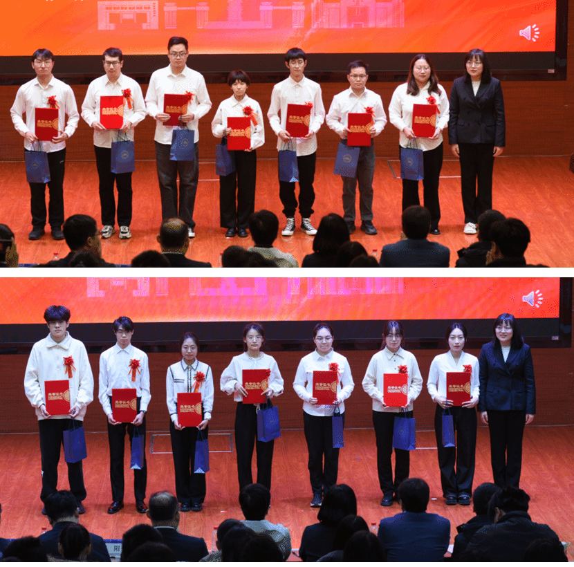 颁奖环节,与会领导嘉宾依次上台为2024年学院各获奖集体和个人代表颁奖。