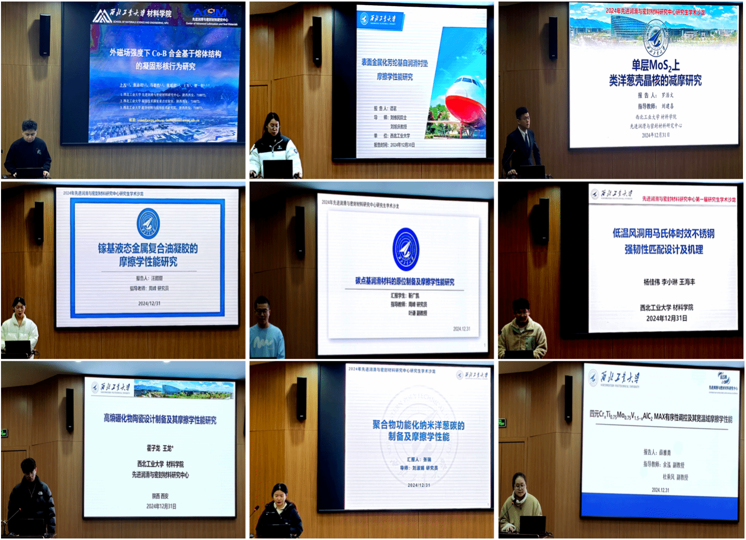 学术沙龙分上下午两场,由润滑中心党支部书记贺一轩和王龙教授主持。润滑中心的17名研究生登台,围绕高熵合金、陶瓷基、聚合物、液体润滑材料及织物轴承润滑衬垫等多领域课题分享研究成果。汇报结束后,评委进行了点评。现场学术氛围浓厚,在思维碰撞中加深了对润滑领域的认知。