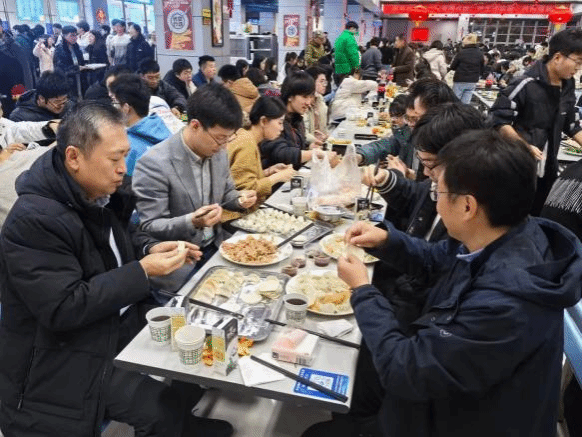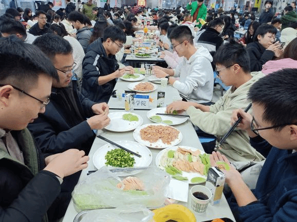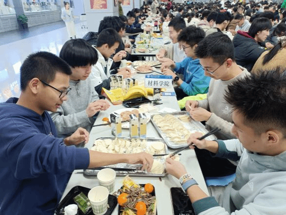 院长付前刚、副院长罗皎、党委副书记禹亮、院长助理兼团委书记孙磊等与师生欢聚一堂,共同展示手艺,品尝美味。在“谁与争锋”竞速包饺赛中,大家各显神通,饺子包得又快又好,为这场水饺宴增添了几分趣味。在“选美大赛”最美饺子评比环节,每个饺子都独具匠心,展示了精湛的手艺。热气腾腾的饺子出锅后,师生们围坐一起,共享这份温馨与喜悦,感受浓浓的新年气息和学院大家庭的温暖。