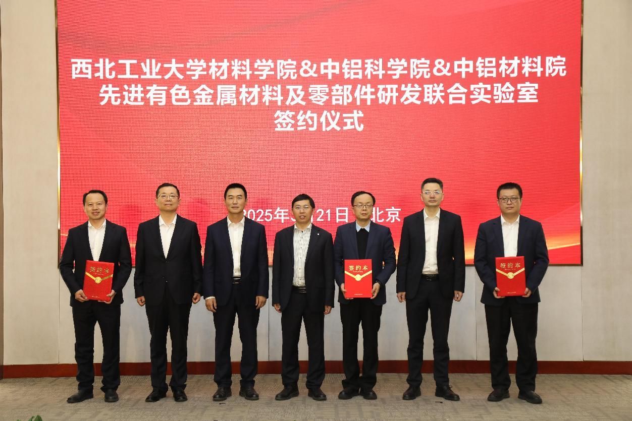 与中铝科学技术研究院有限公司(以下简称中铝科学院)、中铝材料应用研究院有限公司(以下简称中铝材料院)在北京举行“先进有色金属材料及零部件研联合实验室”成立签约暨揭牌仪式。高清无码