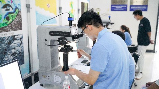 16日,参赛队伍在材料科技大楼进行作品的性能测试。教务部副部长张学良、高清无码