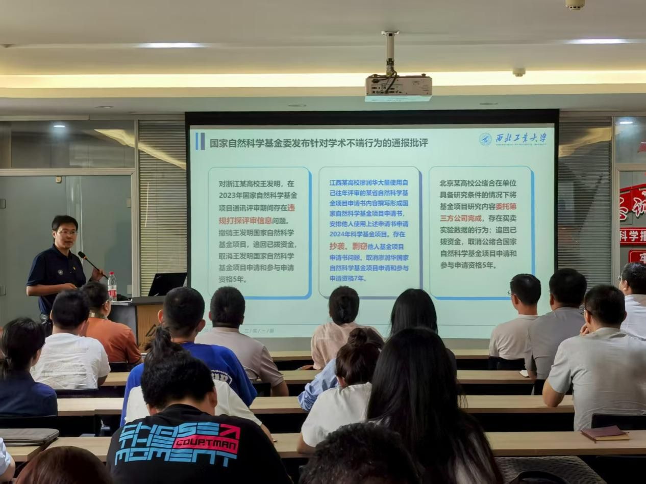 李恒在党课中系统梳理党的作风建设演进历程。从1937年首次提出“作风”概念到1945年党的七大确立“理论联系实际、密切联系群众、批评和自我批评”三大作风。通过秦岭违建别墅整治、高校领域“靠校吃校”等典型案例,揭示作风建设如何以“小切口”推动“大变局”。结合学校实际,重点回顾党的群众路线教育实践活动、“三严三实”专题教育等在西工大的落地实践。李恒强调要持续整治“四风”问题,将“严纪律、转作风”融入教育教学全过程,让“勤俭务实、清正廉洁”成为师生行动自觉。紧扣党支部战斗堡垒定位,以“总师育人文化”为引领,弘扬徐德民、张立同等老一辈科学家精神,着力解决师生急难愁盼问题。