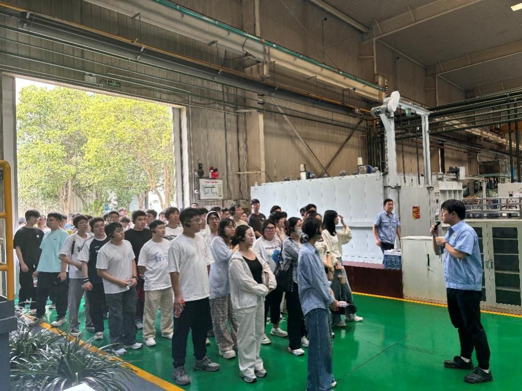 深入生产一线,同学们实地体验了材料制造的严苛环境。在钛合金锻造工段,灼热的气浪与轰鸣的锻压设备,让博士生们直观感受到高端材料成型的挑战与精度要求。随后走进超导线材制备车间,现代化、自动化的生产线与严格的质量管控体系,生动诠释了“国之重器”背后的工艺基石。