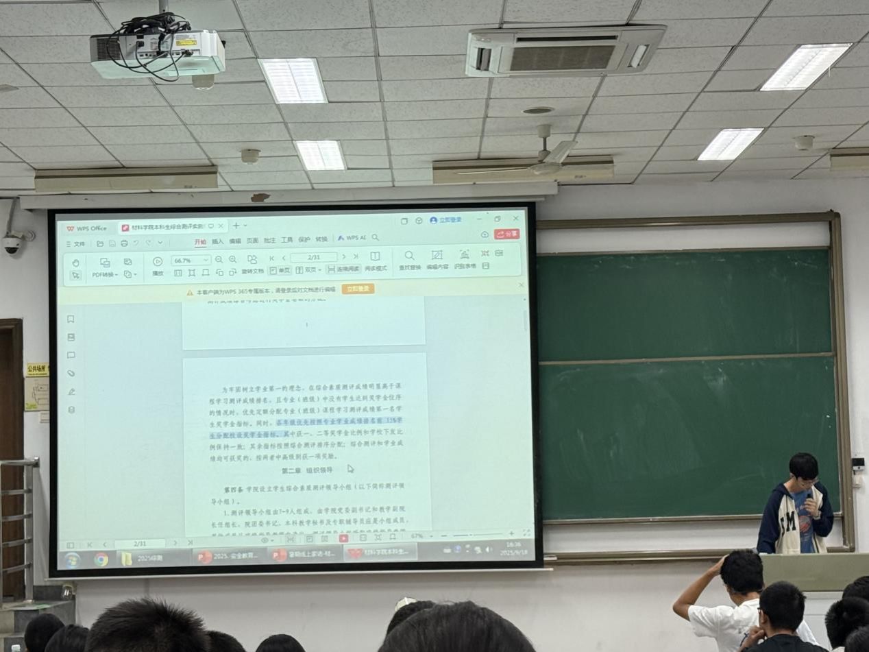 2024级本科生、学生会主席团成员张鸿泽分享了综测提升经验,鼓励新生积极参加大创项目和创新创业竞赛等高水平比赛,在实践中增强综合能力。2024级本科生黄灵杉聚焦学业成绩提升,从平时得分和期末备考两方面介绍了经验。学院奖助学金兼职辅导员林孝盛讲解了校院奖助学金设置情况和申报要求,让新生进一步了解学业发展的目标和方向。