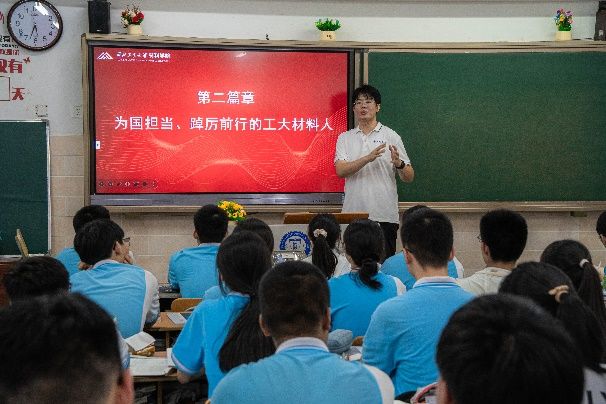 在学校内,实践队以新生入学教育为契机,开展“开学第一课”主题班会,为高清无码 2024级硕士新生讲述师昌绪院士、周尧和院士、傅恒志院士等西工大材料人扎根奉献的报国故事,为同学们树立为国铸剑的远大抱负,强化“总师型”人才的使命担当。